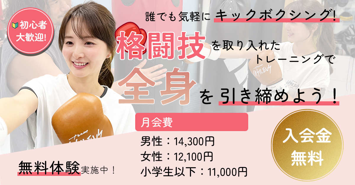 誰でも気軽にキックボクシング。初心者・女性も大歓迎!