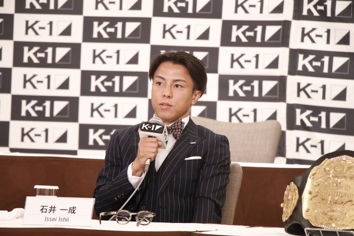 ムエタイの王座も目指している石井は、K-1タイトルへの想いを聞かれ「K-1チャンピオンになることは、僕が格闘技を始めたきっかけでもあるので、そこを目指しています。K-1タイトルは誰もが知っているタイトルなので、ここを獲らないと格闘技人生が終わらないと思っています」と、必ず現役中に獲りたいベルトだとする。
