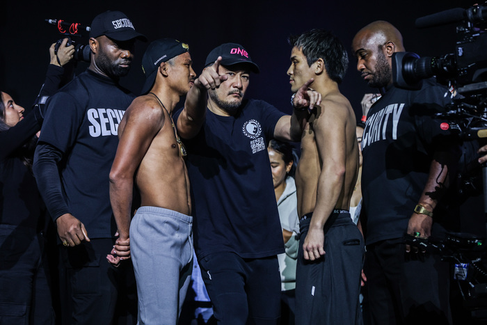 【ONE フェイスオフ】与座優貴 VS スーパーレック・ギャットムー9 試合結果 2025.11.15 2025年11月16日(日)東京・有明アリーナ『ONE 173』(U-NEXT配信)に向け、15日、同所にて公開計量およびフェイスオフが行われた。 一覧に戻る
