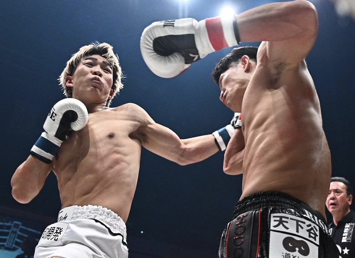 寺田が左ボディ、左ミドル。安本はその左ミドルをもらうも安本は左右ボディと右フックをヒットさせる。