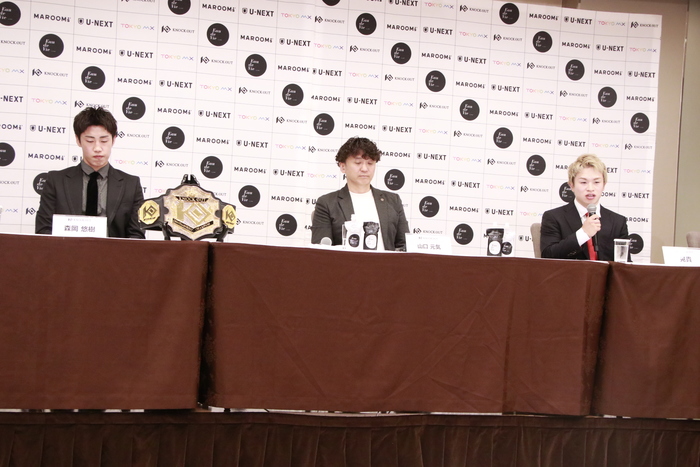 最後に晃貴は「自分と森岡選手の試合は必ず盛り上がるので、KNOCK OUTらしい試合をして、自分が一瞬で終わらせてタイトルを獲るので皆さん応援よろしくお願いします」、森岡は「こんなにアツくて真っ直ぐな晃貴選手と、もう一度リングで戦えることを本当に嬉しく思っていますし、自分自身リングに上がるのが楽しみでしょうがないです。KNOCK OUTファンの皆様、試合を楽しみにしててください。そして次も自分のことを信じて応援してください。必ずやり返します」と、ファンへメッセージを送った。